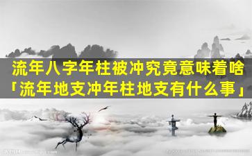 流 🦊 年八字年柱 🐳 被冲,是指出生八字中的年柱与流年天干地支相 🐛 冲。在,命理学中年柱代表祖业、父、母,事。业基础等被冲意味着这些方面会有变动或影响