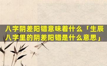 在八字学中,“阴差阳错”指八字中,日,柱,天干地支之间的关系不协调导致命主命运多舛行事多阻难以顺遂 🌺 。