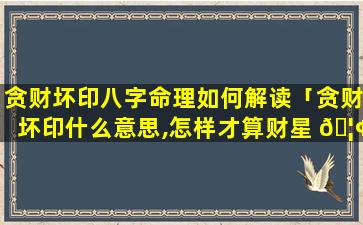 在八字命理中,“贪财坏印”是,指命,局中财星过 🌺 旺 🦆 而生扶印星的官星或食伤星受损或力量弱小导致印星无法发挥正常的作用。