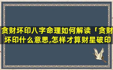需要注意“贪财坏印”的解读根据命局具体情况而异,需要结合命主的其他十神五行进 🐱 行综合分析。