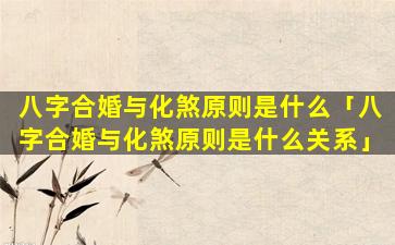 八字合 🌼 婚与化煞原则存在着以下关系:
