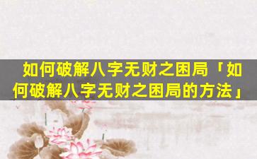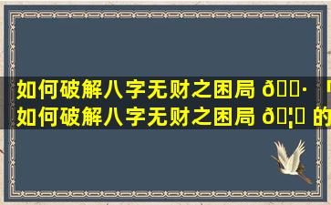八字无财者,可通过化解不利神煞来改善财运。例,如,有。六合贵人吉星时可催旺财运有劫财凶 🐝 煞时可化解破财