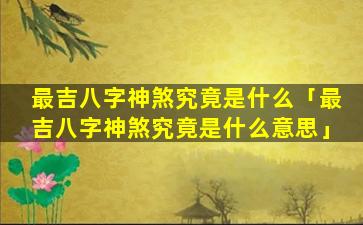 最 🦅 吉八字神 🐧 煞的作 🌺 用