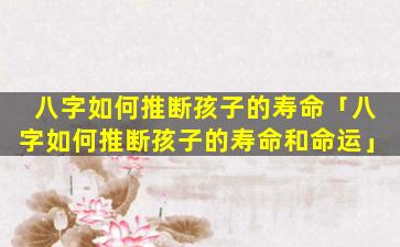 推断孩子的寿命和命运时,应,结合其八字 🌻 中的多种信息并进行综合判断。
