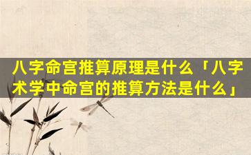 八字 🌵 命宫推算 🌴 原 🦢 理