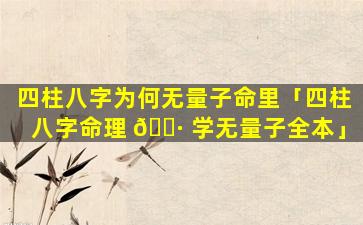 “四柱八字 🐵 命理学无量子着”这“句”话“中的量 🐎 子应该是岂”。