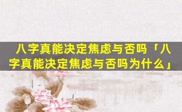 八字能决定焦虑 🌲 与否吗?知 🐬 乎