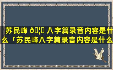 苏民峰是一位命理学家,没有 🌵 找到有关苏民峰“八字篇 🐋 录音内容”的相关信息。