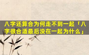 八字算合,并不代表两人一定会 🐈 走到一起。影,响,情侣能否走到一起的因素有很多除了八字 🦈 还有性格、三、观、家。庭背景成长 🌻 环境等诸多因素