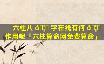 六柱 🦉 八字在线的 🌵 作用包括 🌸 :