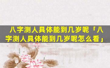 八字测人 🌻 寿命只能推算出相对的趋势,无法具体精确 🌼 到某一年龄。