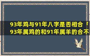 因此,无法仅凭提供的年份信息判断 🐦 年93鸡和年91羊 🍀 是否八字相合。需。要具体八字分 🌷 析才能给出准确的结论