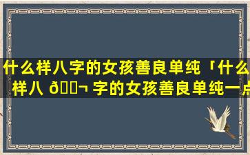 具有以下特点的八字女 🐋 孩往往具备善良单纯的性格: