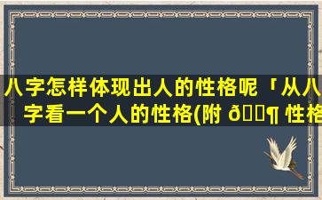 注意 🌻 :八字看性格只是参考,不能完全反映一个人的全部性格特点 🐞 性格。受遗传、环、境,教。育等多种因素影响需要综合考虑