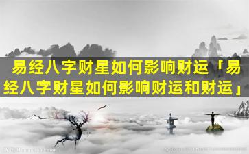 易经中,八,字 🐺 财星指的是日主五行生旺之五行代表着财富、收入和经济状况八字中财星的。强、弱,位。置和组 🦉 合对财运有直接的影响