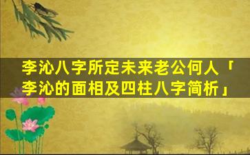 性格: 李沁命格中水旺金强性格,上,比,较刚毅果断坚韧不拔但也容易显 🌺 露出固执的一 🦟 面。