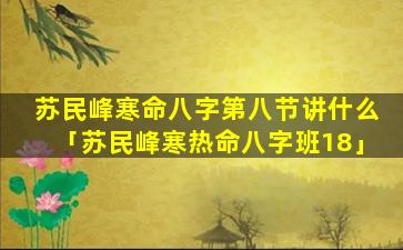 苏 🌲 民 🍁 峰寒 🐛 热命八字班十八讲