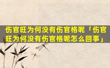 伤官旺 🌸 无伤官格 🐳 的原 🍀 因