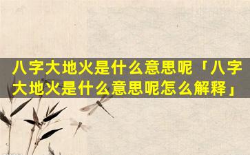 在八字命理学中 🦉 八字,“是”指,出“生”年,月日時辰的八个字 🐦 而大地火则是一种五行属性代表了 💮 特定能量和特征。