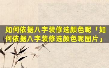 依 🐧 据八字 🦁 装修选 🐦 颜色步骤: