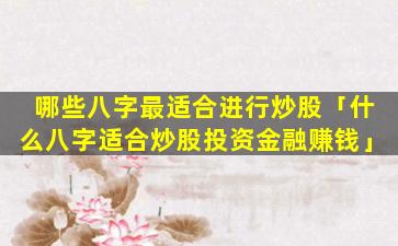 没有科学证据表明特定八字 🌹 适合炒 🌷 股投资金融赚钱。