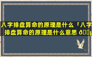解读 🌻 八字命 🐞 盘的步骤 🐶 :