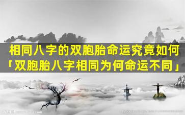 “双胞胎八 💐 字相同命 🐕 运不同”的说法有一定争 🌷 议,存在多种不同的观点和解释。