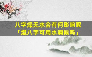 水在八字中具有滋润、调和 🌸 的作用。燥八字用水调候,可,以、平 💐 ,衡、火。土之燥气使性格更加沉稳平和做事更加理性有耐心