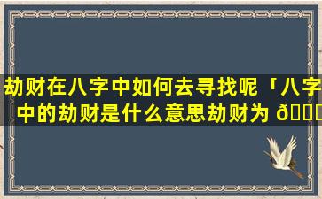 劫财在八字 🐕 中代表竞争对手,若劫财,旺,则暗示身边容易出现对丈夫不利的小人导致丈夫事业受损财、运受影响。