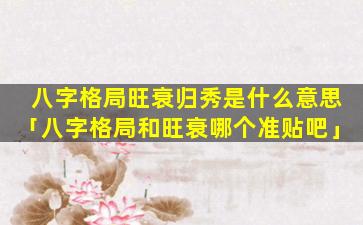 八字格 🦁 局旺衰归秀