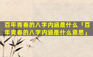 “百年青春 🐵 ”的八字 ☘ 内 🦋 涵: