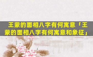 总体而言,王蒙的面相和八字均显示其具有较好的事业运、财运和智慧其。性,格,温,顺。稳重善于观察和 🐋 思考有领导才能人缘也 🦁 很好