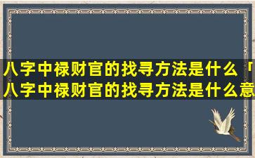 八字中禄、财、官 🐟 的找寻 ☘ 方法