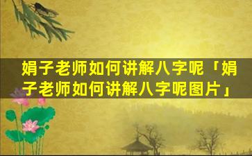娟子老师讲解八字 🐈 主要包 🦁 含以下步骤:
