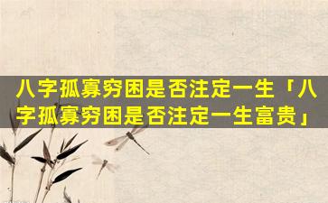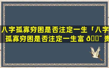 “八字孤寡穷困”是一种命理学说法,认为一个 🍁 人的出生时间八字(可)以,决定其一生的命 🦁 运包括婚姻、财富和健康。这种说法,并。没有科学依据且存在诸多争议