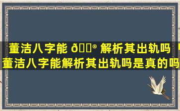 八字分析是一种传统的占卜方法,并未 🦍 得到科学证实。因,此。无法通过董洁的八字来判断她的出轨行为