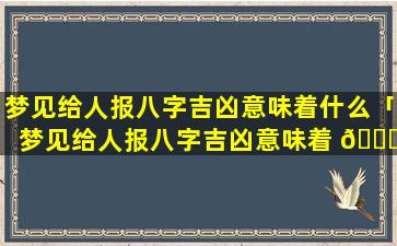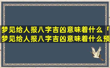 梦见给人报八字吉 🌴 凶的预 🐟 兆: