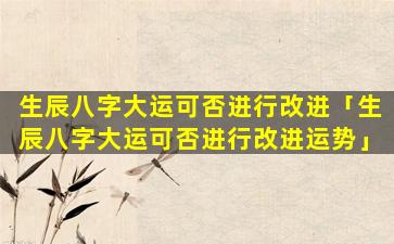 是否可以改进生辰八字大运的 🐵 运势