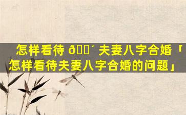 八 🐘 字合不合 🕷 的参考要 🐒 素
