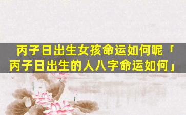 总运:丙子日出生女 🐋 孩总体运势不错。