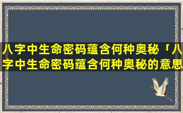八字 🐋 中生命密 🦆 码蕴含的奥秘主要包 🦊 括: