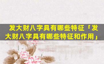 发大 🦉 财八 🌳 字特 🐱 征和特点