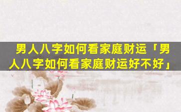 综合判断结 💮 合以上因 🦁 素,可以综合判断男人的八字家庭财运好坏: