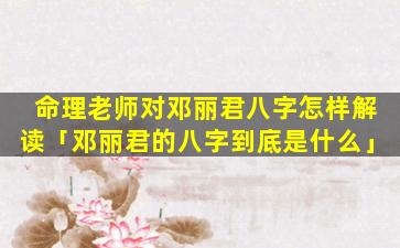 邓丽君 🌷 八字命 🦅 理