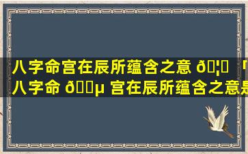 命宫 🐶 在辰 🌲 的 🐳 含义