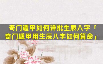 奇门遁甲详 🦍 批生辰八 🌺 字的 🌹 方法