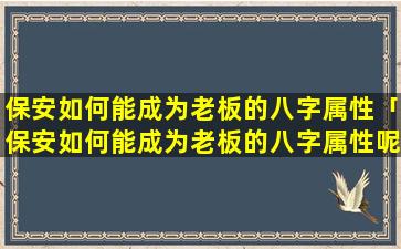 保安如何 ☘ 能成为老板的 🐦 八 🌻 字属性
