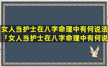 在八字命理中,职业和命运之间的联系是通过命格和五行生克关系来体现的。对于“女人当护士”这,一,职业八字命理。并没有固定的说法但可以根据命格中的五行属性 🐠 和生克制化关系进行具体分析