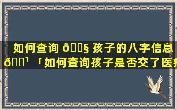 注意事项:查询时需要提供孩子的身份证号码或 🦅 医保 🦄 卡号 🌳 。