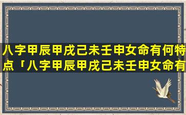 八字甲辰甲戌己未壬申女 🐘 命特点: